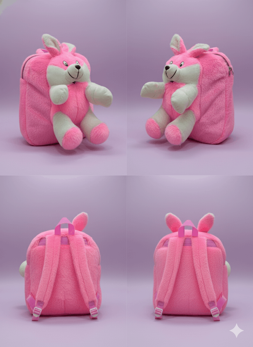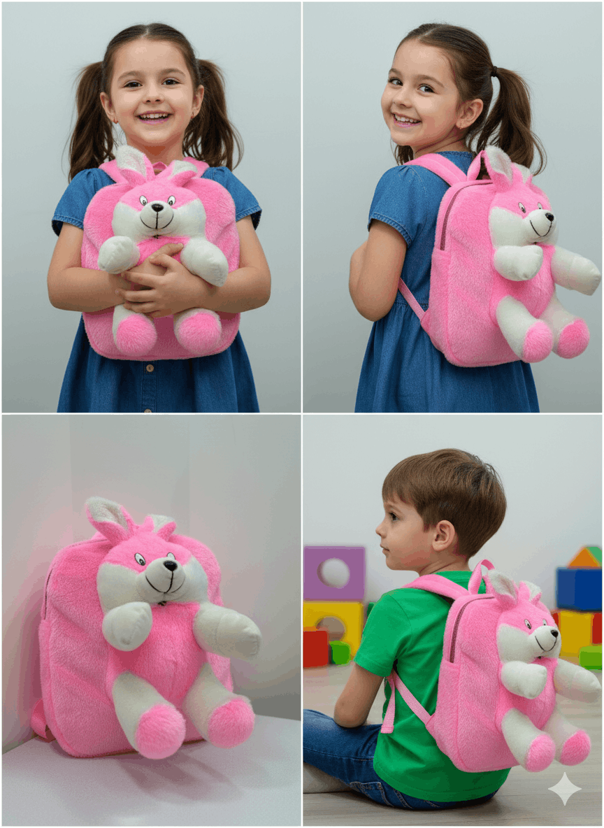 Make every day adorable with this Cute Pink Bunny Plush Backpack for Kids. Designed with ultra-soft fabric and a lovable teddy bunny character, this lightweight backpack is perfect for toddlers, preschoolers, and young kids for school, outings, and travel.