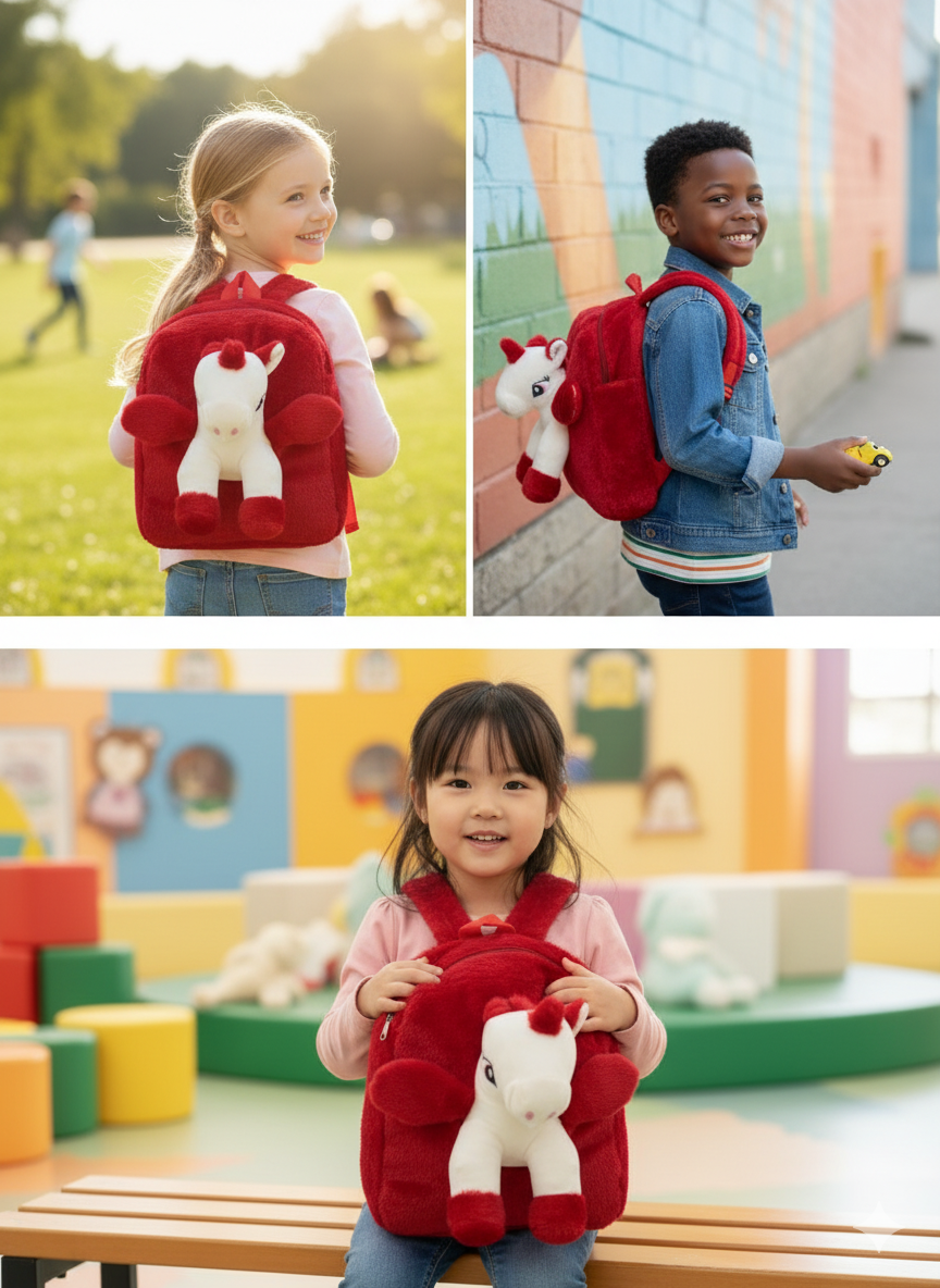 Add magic to your child’s everyday routine with this Red Unicorn Plush Backpack for Kids. Crafted from ultra-soft fabric with a cute unicorn design, this lightweight backpack is perfect for preschool, playtime, travel, and gifting.